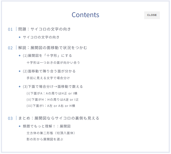 キーワード:#サイコロの回転 #展開図 #向かい合う面 #文字の向き #場合分け