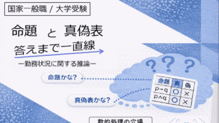 公務員試験の数的処理で頻出の推論問題には、タイプ別に「決まった解き方」があります。この記事では、問題のタイプの見分け方から正解を得るまでの流れを世界一ていねいに解説。過去問みたいなオリジナル問題を解きながら、本番で「解く力」が身に付く。